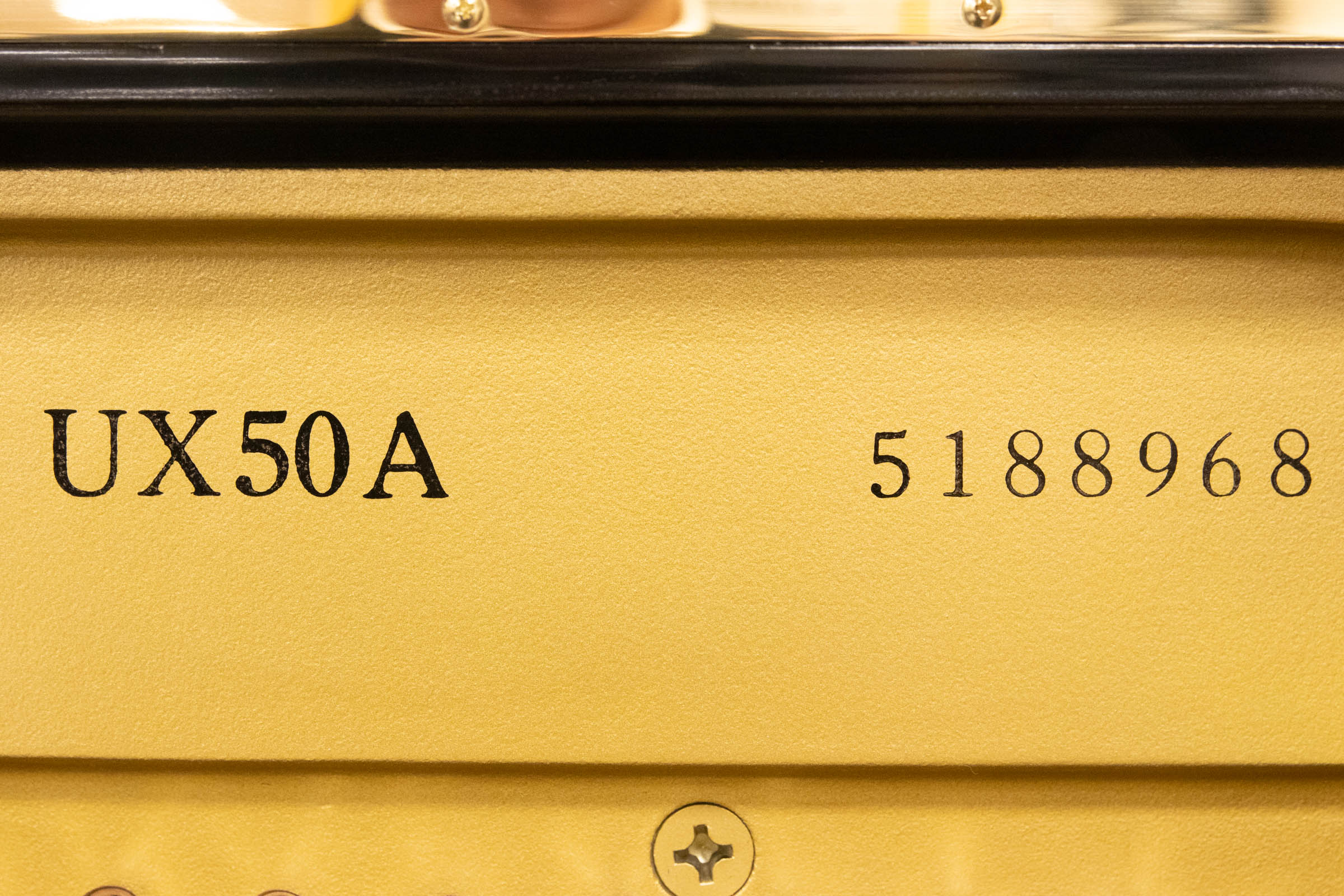 ヤマハXシリーズのハイグレードモデルがUX50Aです。背面採用された「X型支柱」がボディ全体をぐっと支えることによって、美しい響きや迫力ある音量を実現しています。ハイグレードモデルとして、中・低音部アグラフやグランドピアノと同じ素材を使用した特製ハンマーが採用されています。大型譜面台を引き出すことによって後ろにこもりがちな音の通り道を前面につくる「トーンエスケープ機構」により、弾いた音を直接聴きながらより繊細な演奏が可能です。上質な中古ピアノをお探しの方にオススメの一台です。