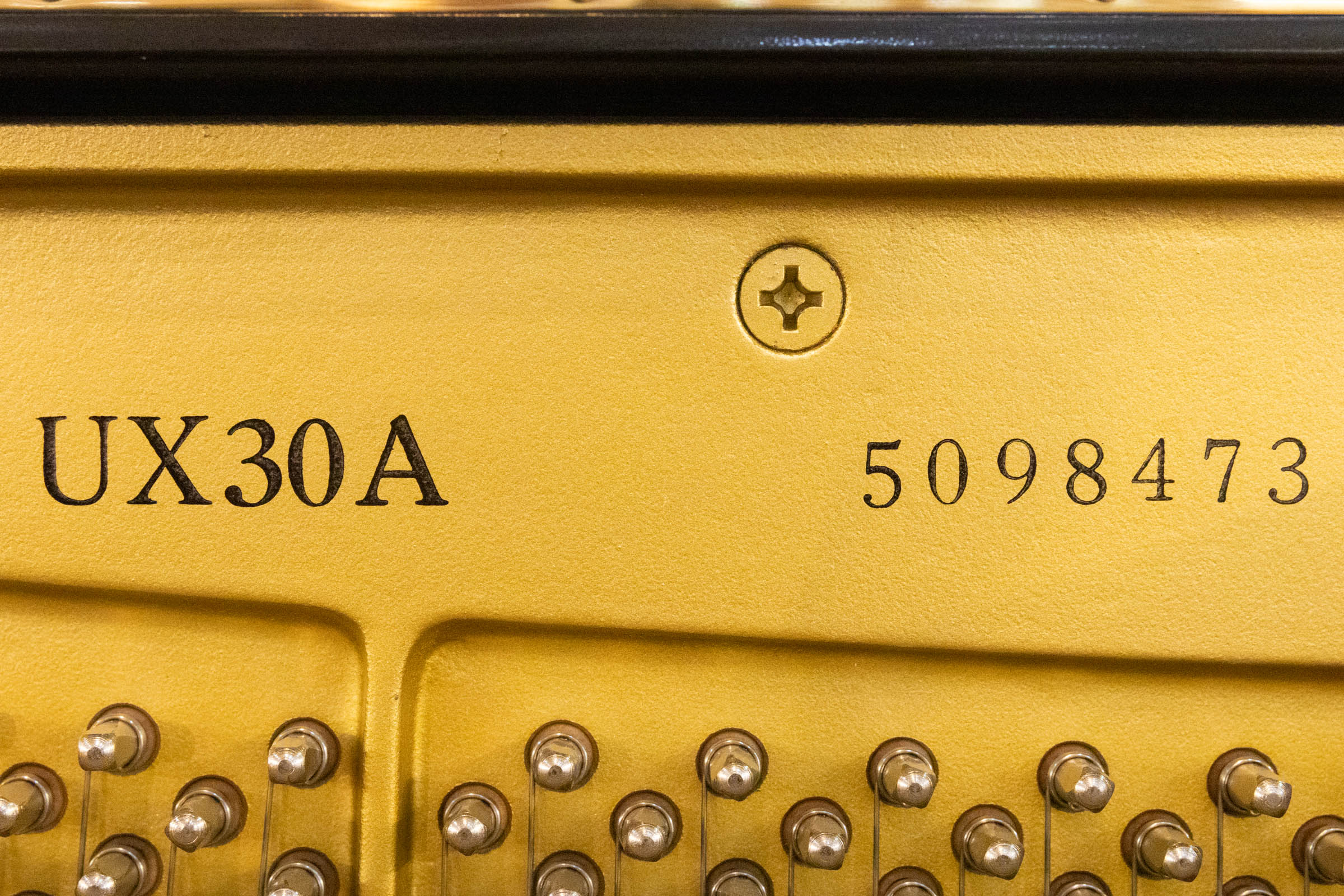 ピアノ製造の最盛期である80年代から90年代後半にかけて造られていた、往年の名器とも言えるUXシリーズですが、その中でも特に人気が高く入荷後すぐに売れてしまうことが多いのがこのUX30Aです。背面に「X型支柱」を採用し、ピアノ全体の耐久性を高めることで伸びのある美しい音色と豊かな響きを実現します。大型譜面台はグランドピアノの譜面台とほぼ同じ高さになっており、目線がぐっと上がり良い姿勢で練習して頂けます。またこれを引き出すことによって「トーンエスケープ機構」が機能し、後ろにこもりがちな音の逃げ道を前面に作ります。この働きによって音が弾き手に直に響き、より繊細な演奏が可能になります。グランドピアノに近い音色と演奏性を兼ね備えた上級グレードのピアノです。
